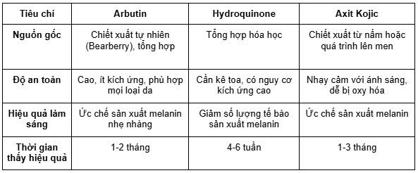 So sánh Arbutin với các hoạt chất làm sáng da khác