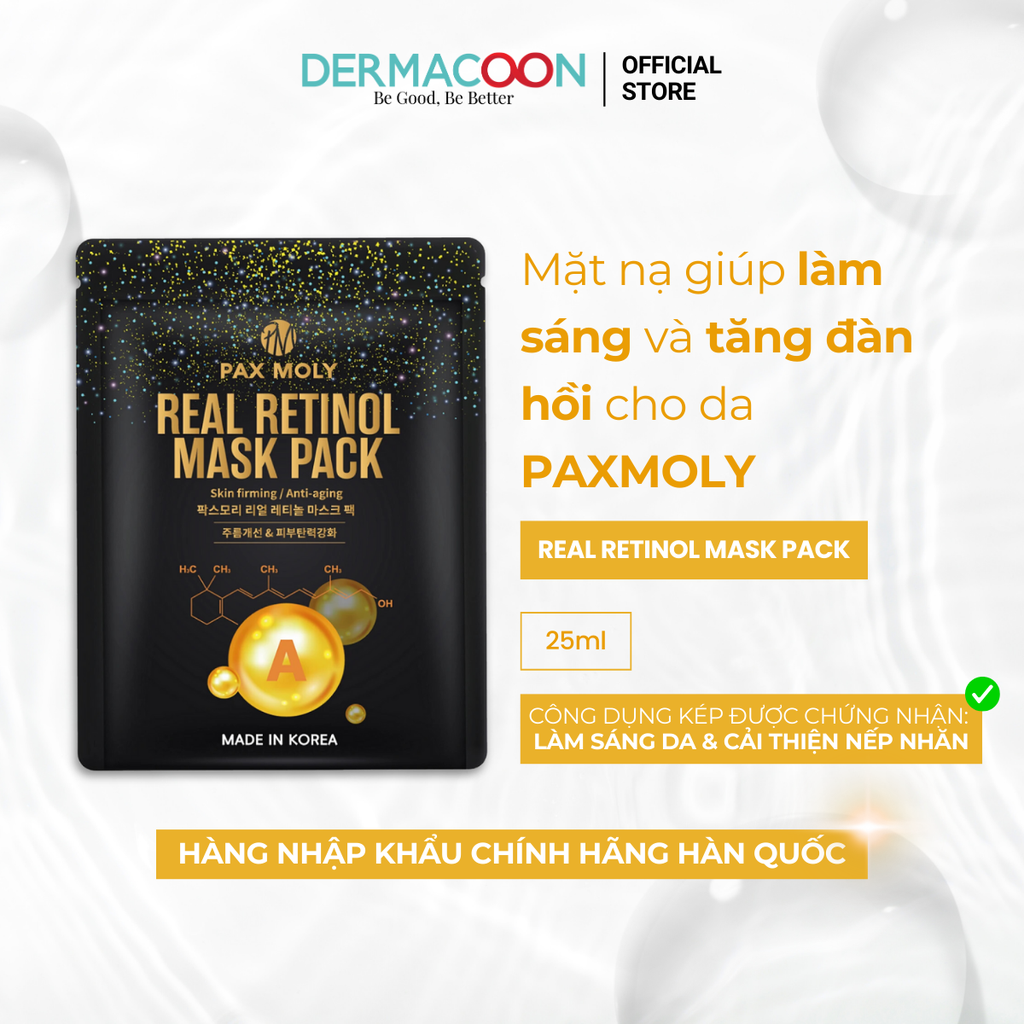 Mặt Nạ Pax Moly Real Retinol Mask Pack có khả năng sửa chữa làn da, được đánh giá là sản phẩm mới nhất tại thị trường mỹ phẩm Việt Nam. Một siêu phẩm chăm sóc da tuyệt vời nhất để phục hồi sức khoẻ làn da của bạn chỉ trong khoảng thời gian ngắn ngay tại nhà. Sau đây cùng điểm lại một số ưu điểm và thành phần nổi bật của sản phẩm.