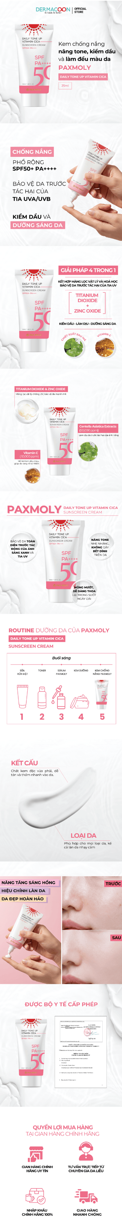 Trên thị trường hiện nay có rất nhiều sản phẩm kem chống nắng, khiến người tiêu dùng khó khăn trong việc lựa chọn. Và bạn đang tìm kiếm cho mình một dòng sản phẩm kem chống nắng vừa có khả năng hỗ trợ kiềm dầu, bảo vệ da khỏi tác hại của ánh nắng mặt trời vừa giúp làn da nâng tone sáng mịn, rạng rỡ. Thì dòng kem chống nắng giúp nâng tone kiềm dầu Daily Tone Up Vitamin Cica Sunscreen Cream của nhà Pax Moly là một sự lựa chọn dành cho bạn.