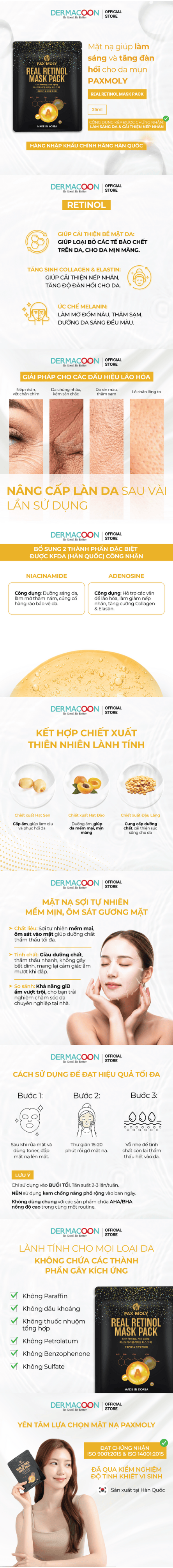 - Retinol: hoạt chất vàng trong việc chống lão hóa, kích thích sản sinh collagen, tăng cường độ đàn hồi cho da