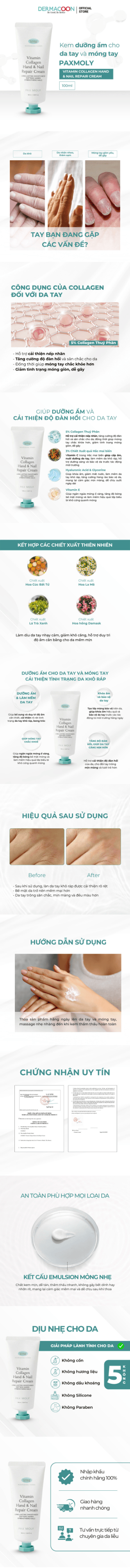 - Hỗ trợ tăng độ đàn hồi, cho da tay trông căng mịn hơn nhờ Collagen thủy phân.