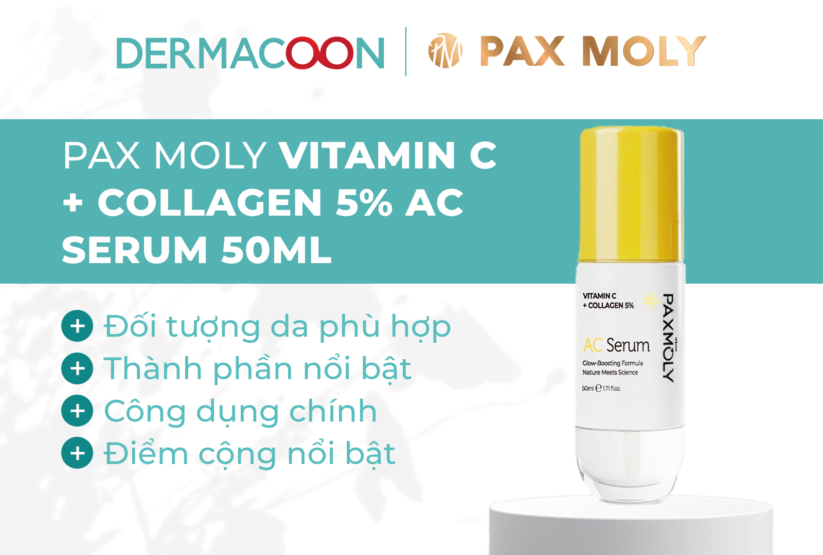 Trong danh sách top 5 serum dưỡng sáng da được quan tâm hiện nay, PAX MOLY Vitamin C + Collagen 5% AC Serum 50ml là lựa chọn phù hợp cho làn da vừa cần cải thiện sắc da, vừa muốn duy trì độ đàn hồi và độ ẩm ổn định.